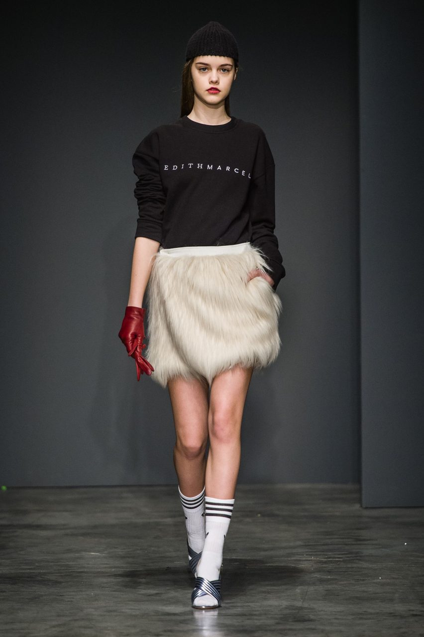 La collezione presenta anche una selezione di essential: felpe e t-shirt che sfruttano l’immediatezza del logo, del simbolo e, soprattutto, aggiornano l’idea di illustrazione, uno dei segni più riconoscibili dell’estetica EDITHMARCEL; i motivi delle t-shirt dichiarano infatti il loro contatto con i piccoli ma onnipresenti