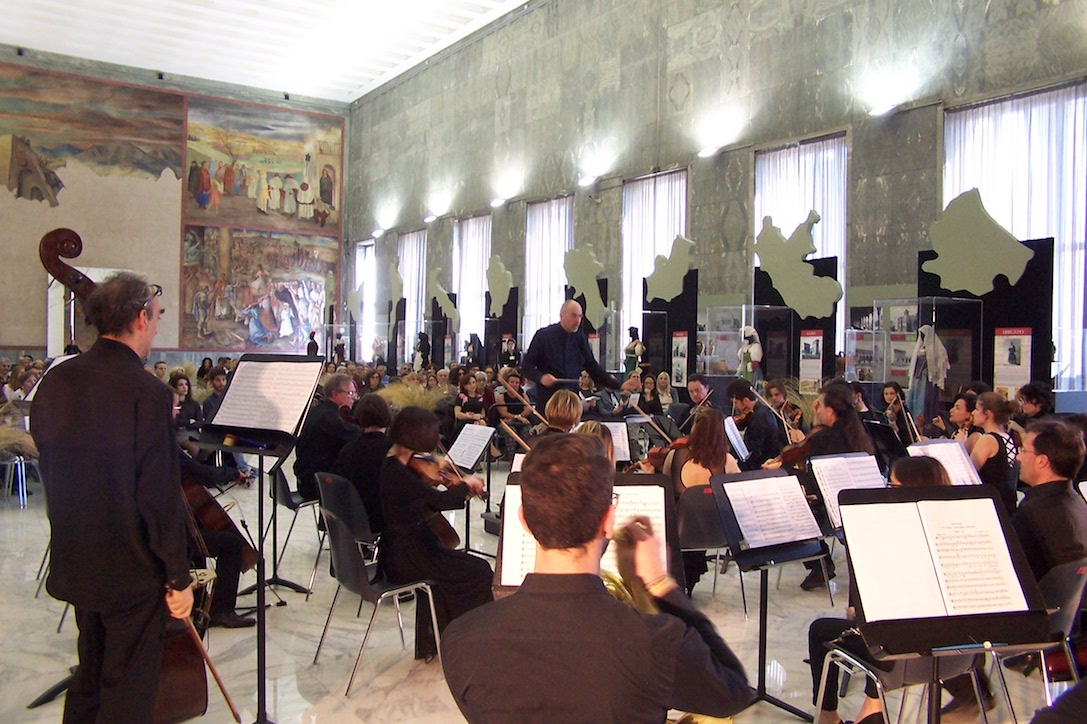 I 35 elementi dell’orchestra, diretta magistralmente dal Maestro Giorgio Proietti, Direttore Stabile della Accademia Internazionale di Roma, nonché Professore Ordinario di Direzione d’Orchestra presso il Conservatorio “Licinio Refice”, hanno eseguito brani sinfonici composti da W.A. Mozart, L.V. Beethoven e F. Mendelssohn.