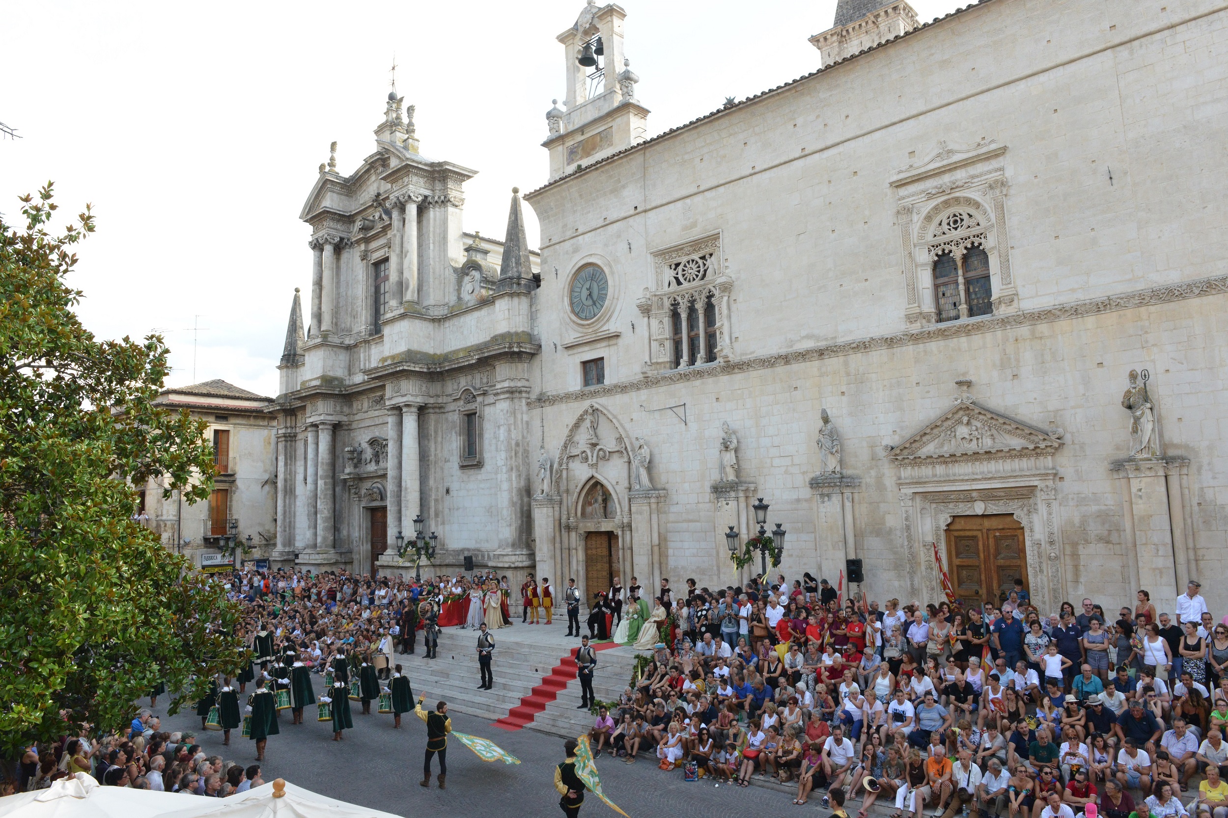 Grande emozione è stata regalata all’affollatissima platea di Piazza Maggiore anche dal cantante Piero Mazzocchetti che ha prima eseguito l'inno di Mameli, per dare il via ai combattimenti, e poi si è esibito in "Parlami d'amore Mariù", raccogliendo un lungo applauso non solo del pubblico, ma anche della Regina.