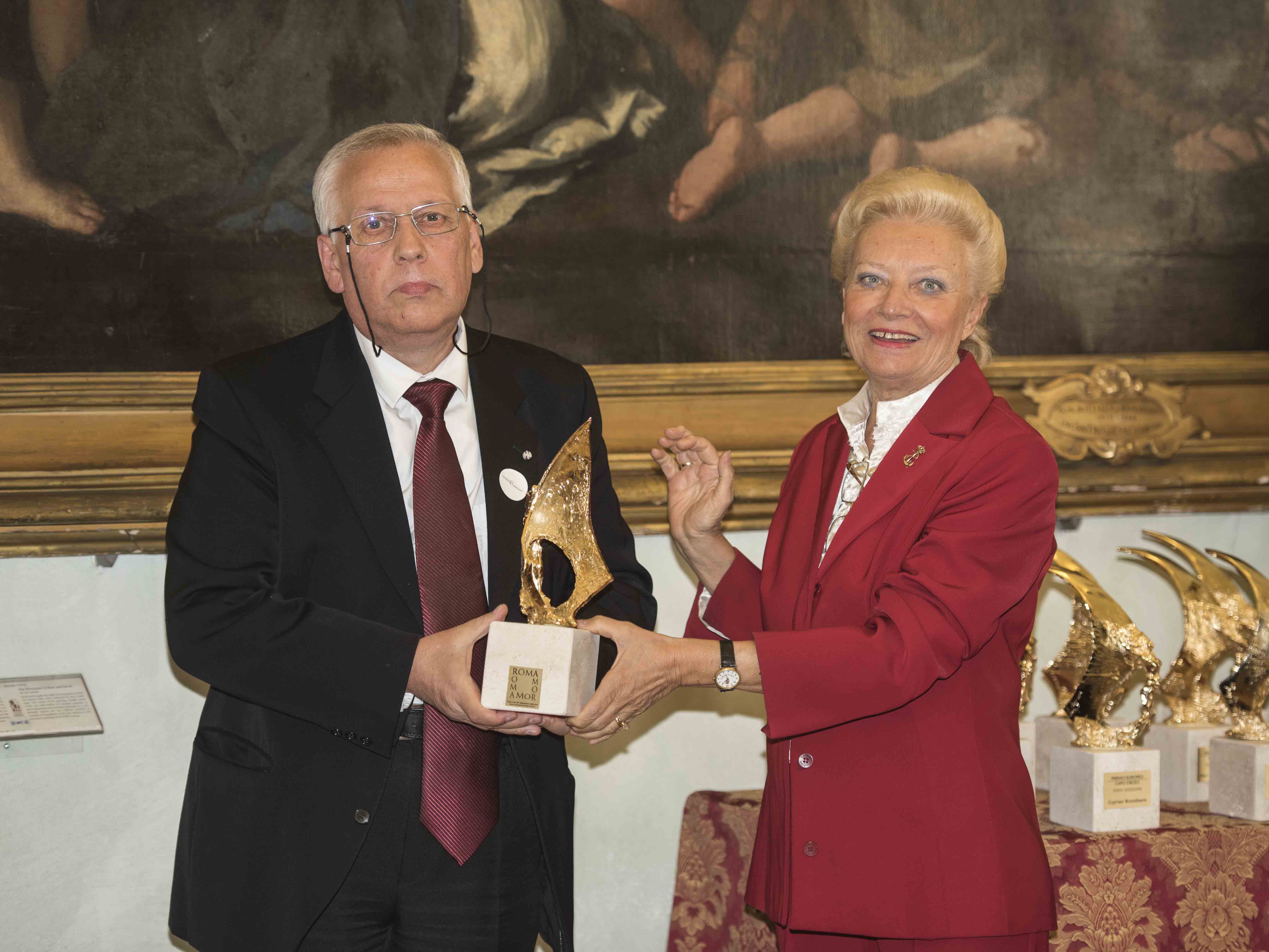 La pittrice Adriana Soares e il Dr. Renato Benedikter ritirano il Premio per la Società tedesca Max Planck