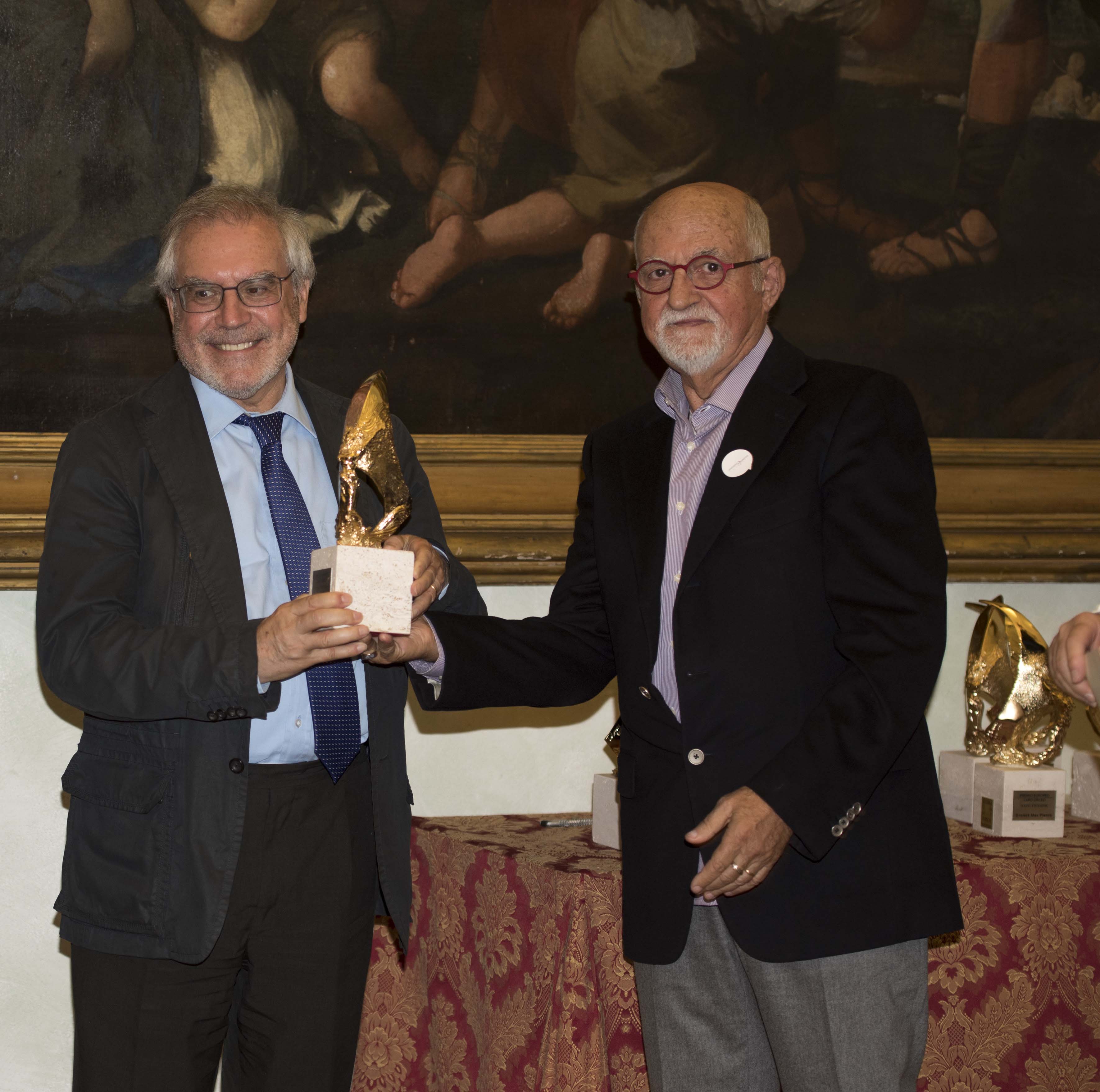 Il famoso scultore Alessandro Romano riceve il Premio dallo scultore Alessandro Marrone