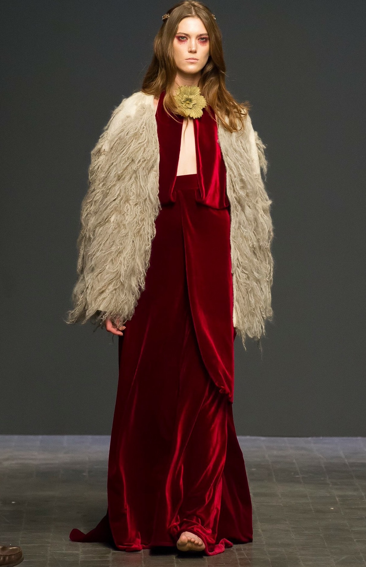 Una collezione per l’autunno/inverno 2016-17 in cui si evince il forte utilizzo delle lane, delle pelli (animali e vegetali), delle pellicce (vere ed ecologiche) e dei tessuti eco sostenibili: un’alta moda contemporanea che di romantico ha l’idea del futuro e del viandante come simbolo dell’uomo in divenire, costruita ed elaborata attraverso la complessa struttura sartoriale e le sue leggi.