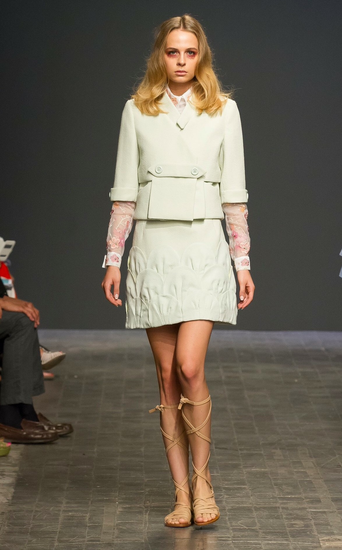 Spazio a un’importante novità: la capsule collection, nata dal progetto “ L’Accademia Koefia per Sandro Ferrone”, curato e coordinato da Giuseppe Testa, responsabile dell’ufficio stile Sandro Ferrone, si è conclusa con la premiazione di tre giovani stilisti, i quali hanno presentato i loro capi firmati Sandro Ferrone in passerella e sono stati premiati dallo stesso. Sono stati scelti per l’occasione: Lika Patiashvili, Simone Raponi e Chiara Santori su un’ampia selezione di circa 150 bozzetti e figurini. I tre finalisti hanno saputo raccontare e interpretare la creatività di un settore come quello del Fast Fashion: Simone Raponi ha proposto uno stile retrò che guarda al modernismo di forme e di colori per una visione femminile rinnovata e contemporanea; Lika Patiashvili ha creato abiti che delineano la silhouette, con un mood sensuale e femminile; Chiara Santori ha proposto pelle e pizzo enfatizzando e rivisitando in chiave "street" un abito icona del brand Sandro Ferrone.