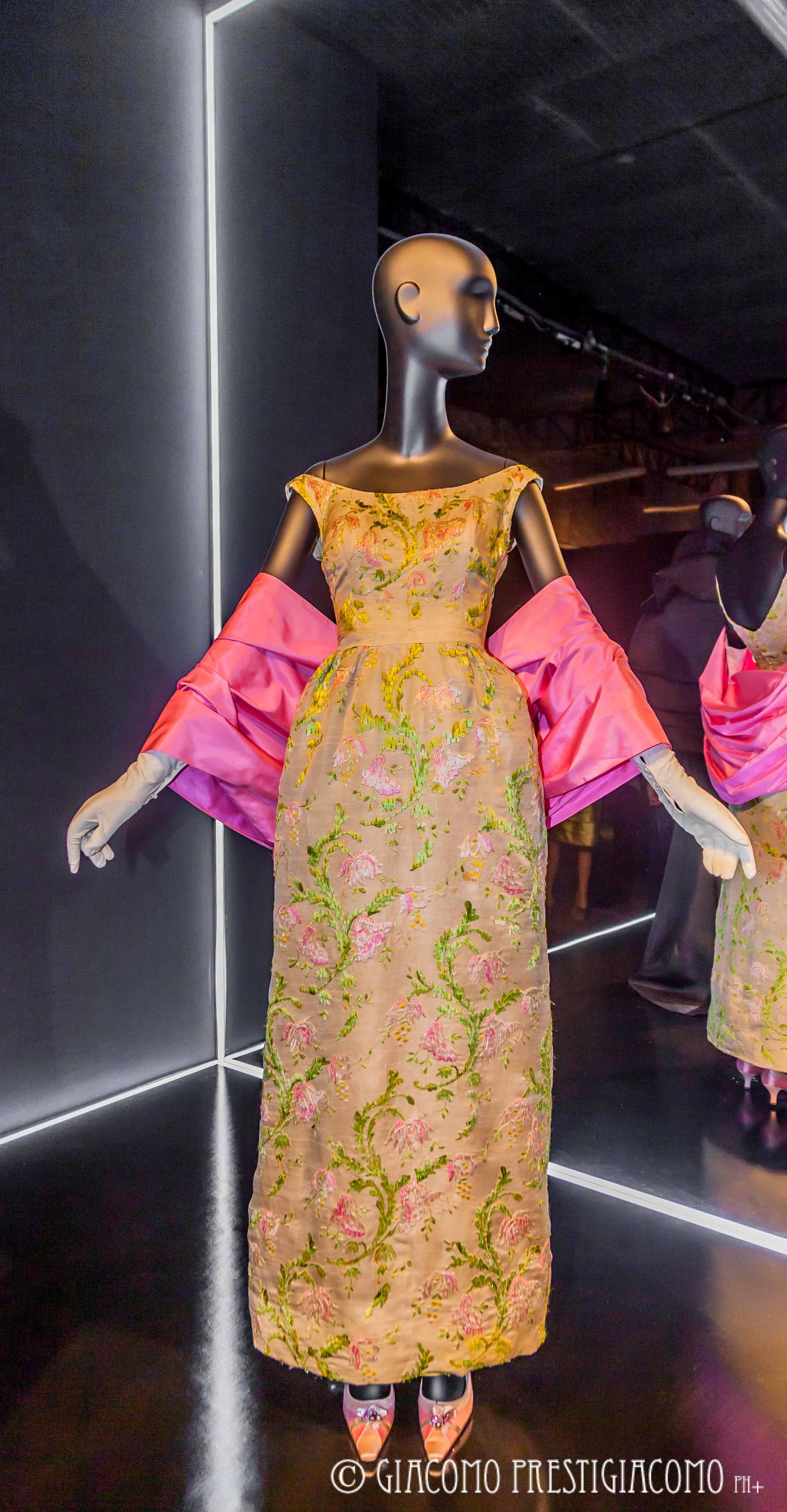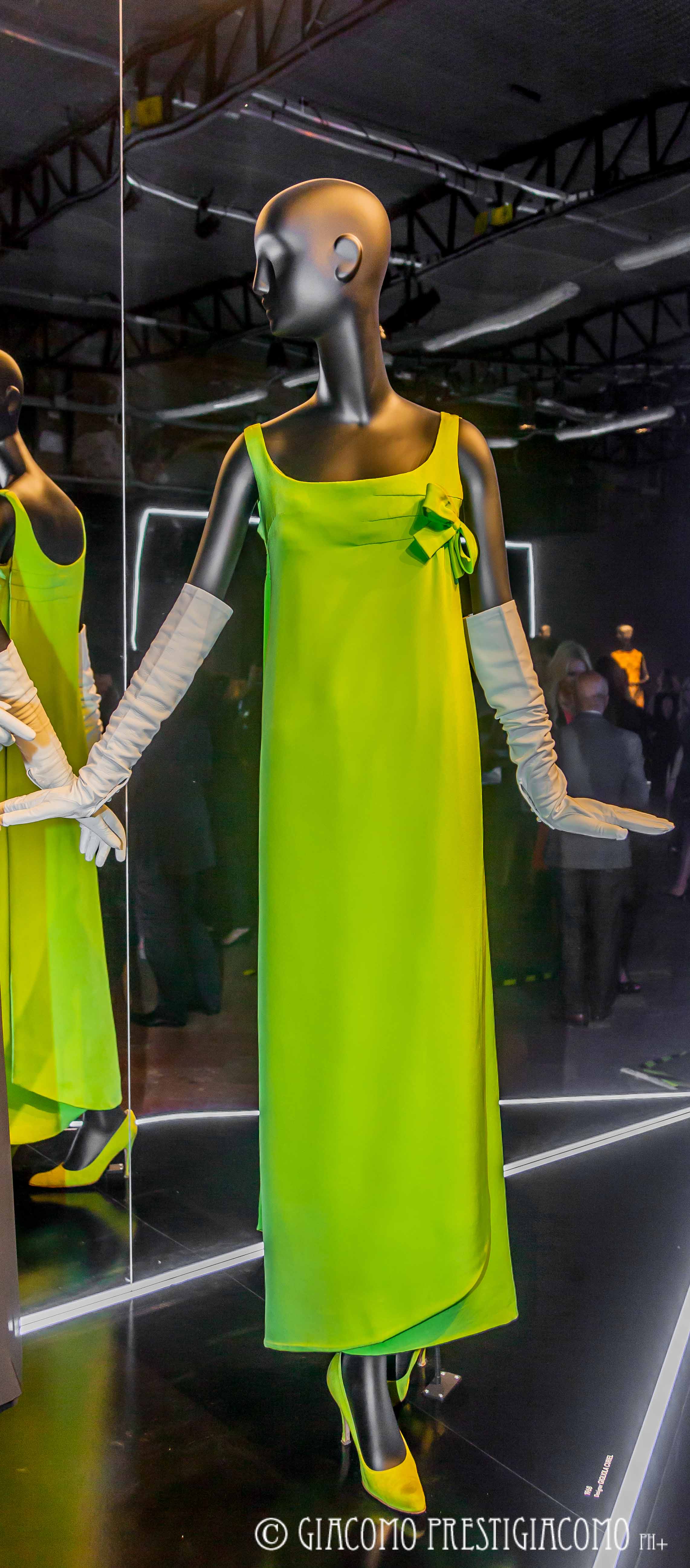 La mostra allestita nella ex chiesa di San Carpoforo in via Formentini, in pieno centro storico di Milano, si suddivide in diversi settori: arte, la Scala, exoticism, white, print & graphic. Nel settore arte sono stati esposti tutti gli abiti ispirati dai vari artisti amati da sempre dalla stilista: opere di Jim Dine, Picasso, Klimt, Frida Kahlo, Depero, Chagall. Nella sezione la Scala abbiamo potuto ammirare tutti gli abiti che la stilista ha disegnato per le prime delle opere liriche e che hanno indossato le signore dell’alta società e dell’aristocrazia. Nella sezione exoticism collezioni con stampe che richiamano i paesi esotici, luoghi ricchi d’incanto e fascino. La sezione white è dedicata agli abiti da sposa, print & grafic all’arte moderna, con disegni e colori che la ricordano.
