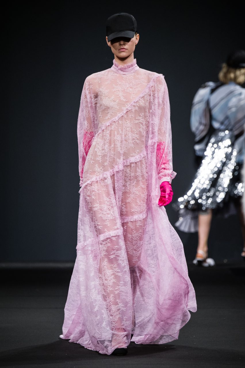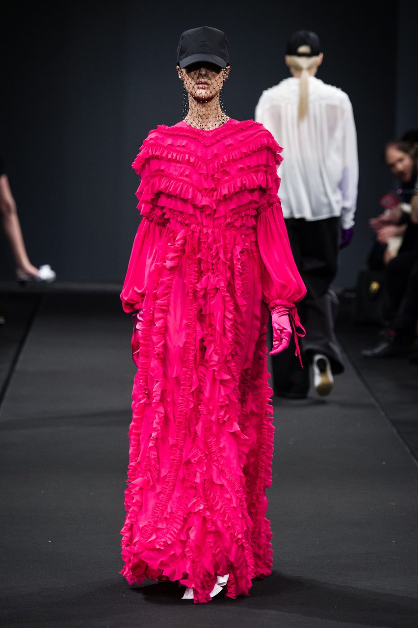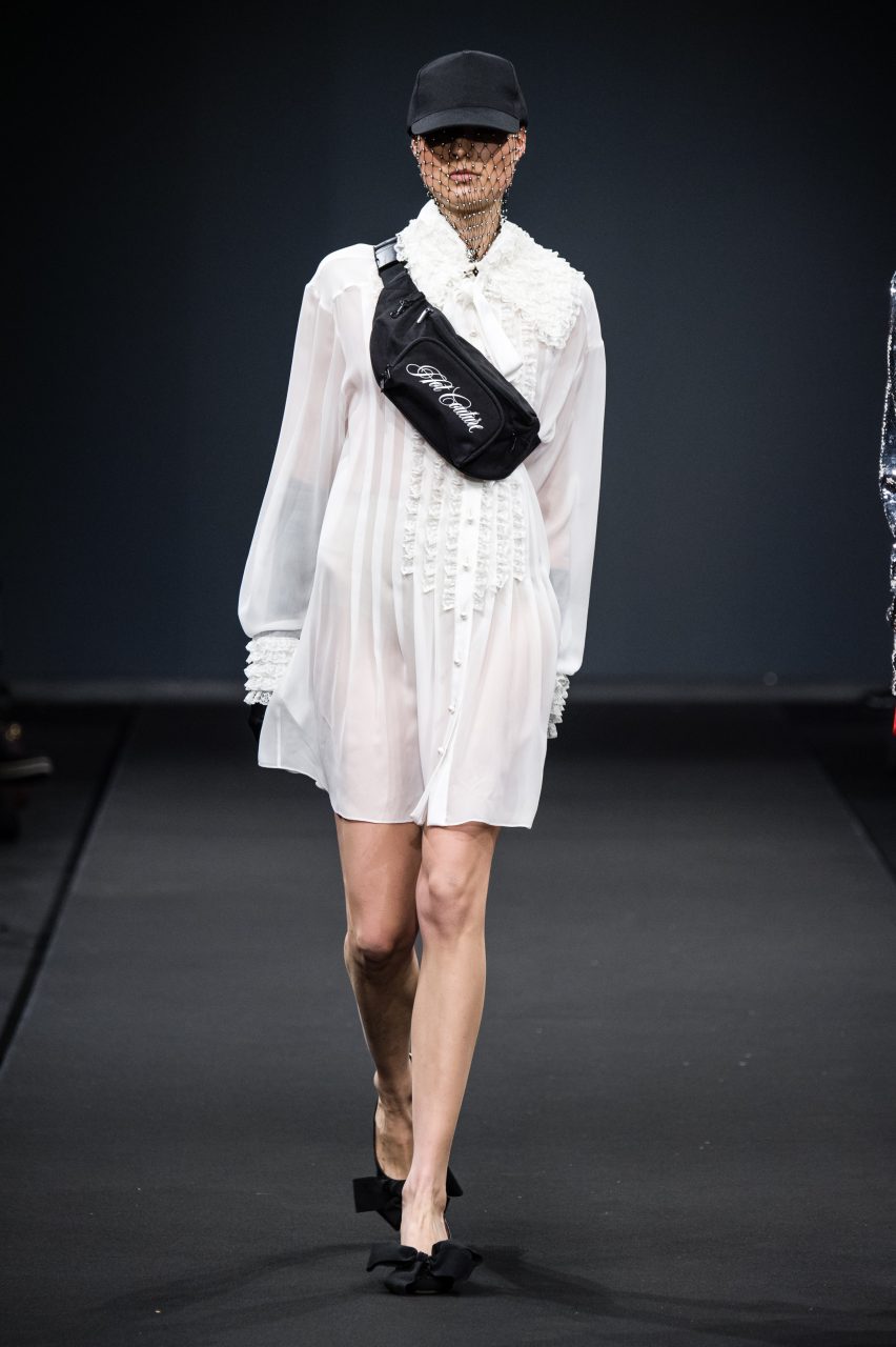 Coerente con la visione stilistica che gli ha valso la vittoria al concorso “Who Is On Next?” lo scorso anno, lo stilista ha proposto una femminilità eclettica e dall’eleganza facile.