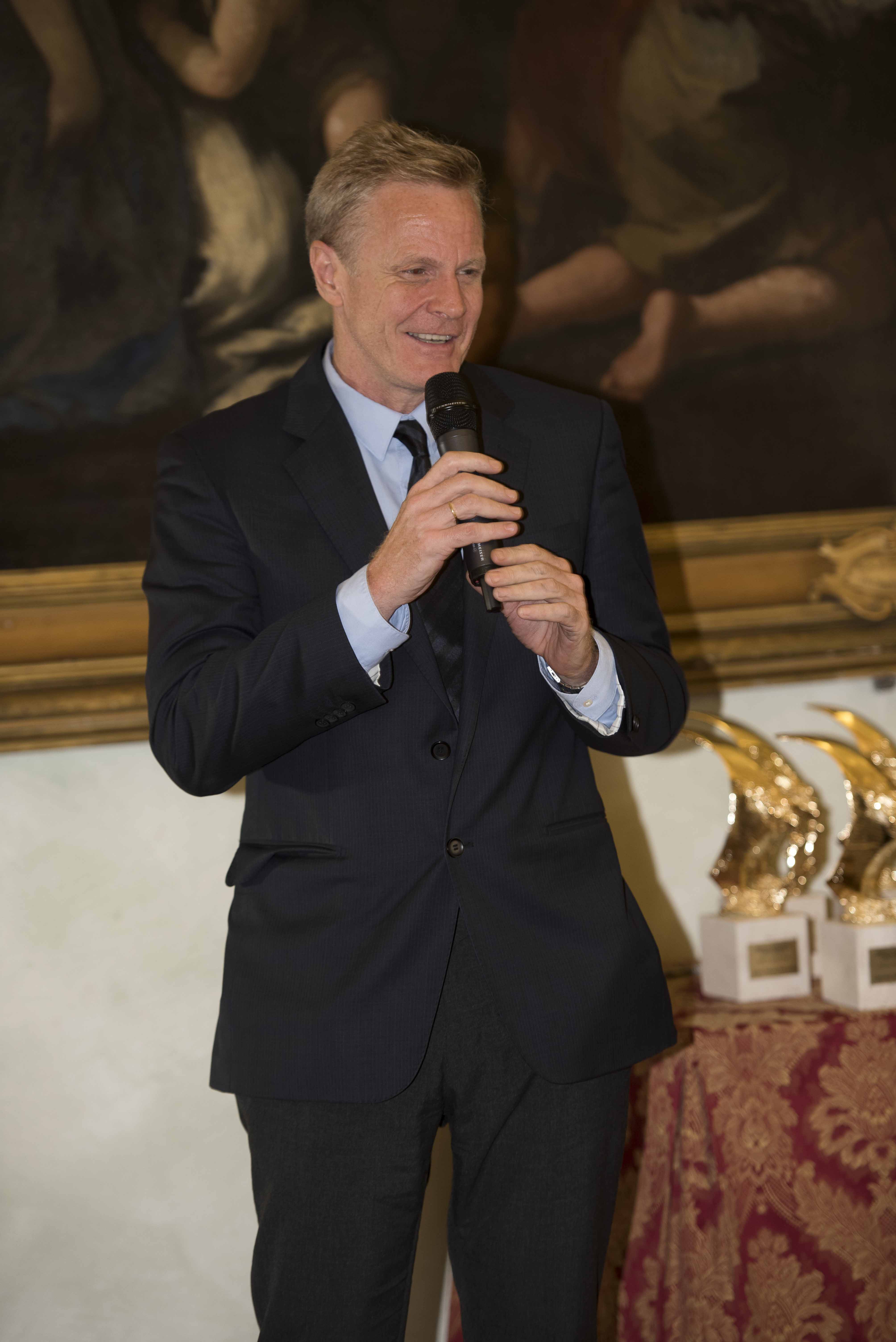 Il Segretario dell’Ambasciata di Spagna Dr. Juan Claudio de Ramon ritira il Premio per lo scrittore Arturo Pèrez – Reverte, consegna il Premio la Dott.ssa Paola Sollenni