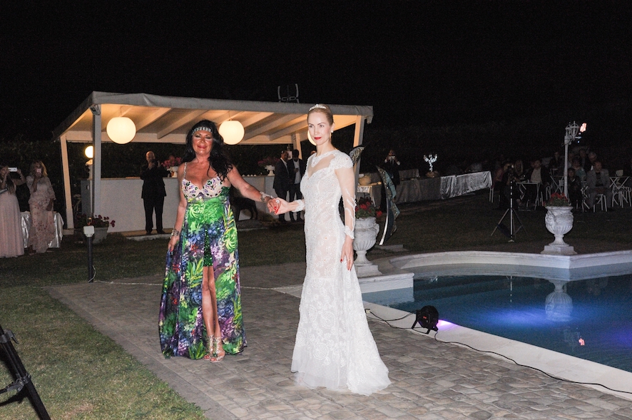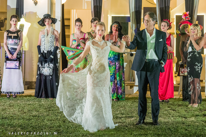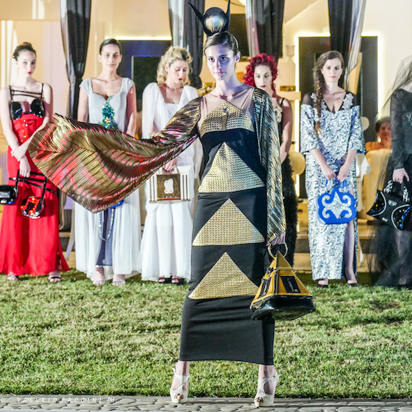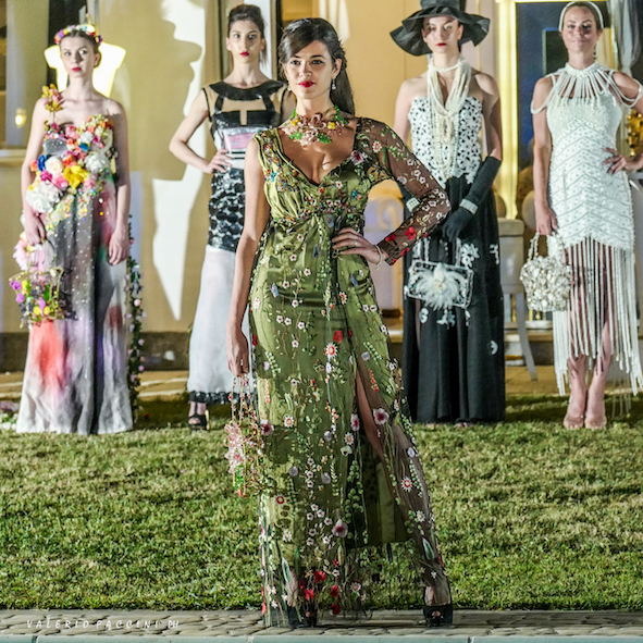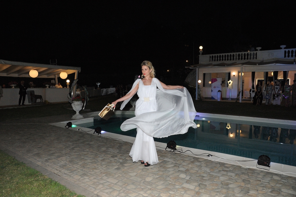 La serata è proseguita con la sfilata Haute Couture della stilista Eleonora Altamore dal titolo “La Donna nel tempo”. Venti modelle hanno sfilato indossando ventinove abiti che ci hanno fatto ripercorrere tutte le epoche della nostra storia, dalla Preistoria ai giorni nostri, ispirandosi alle più importanti icone femminili. Più che una collezione una vera e propria storia del costume, un tuffo nel passato, presente e futuro. Non sono mancati cappelli, copricapo, originali bijoux e le borse gioiello che contraddistinguono tutte le collezioni della stilista. Le acconciature delle modelle sono state create dagli hair stylist “Spettinati”, mentre il make up è stato curato dall’Accademia di Trucco Professionale coordinata da Stefania Flori.
