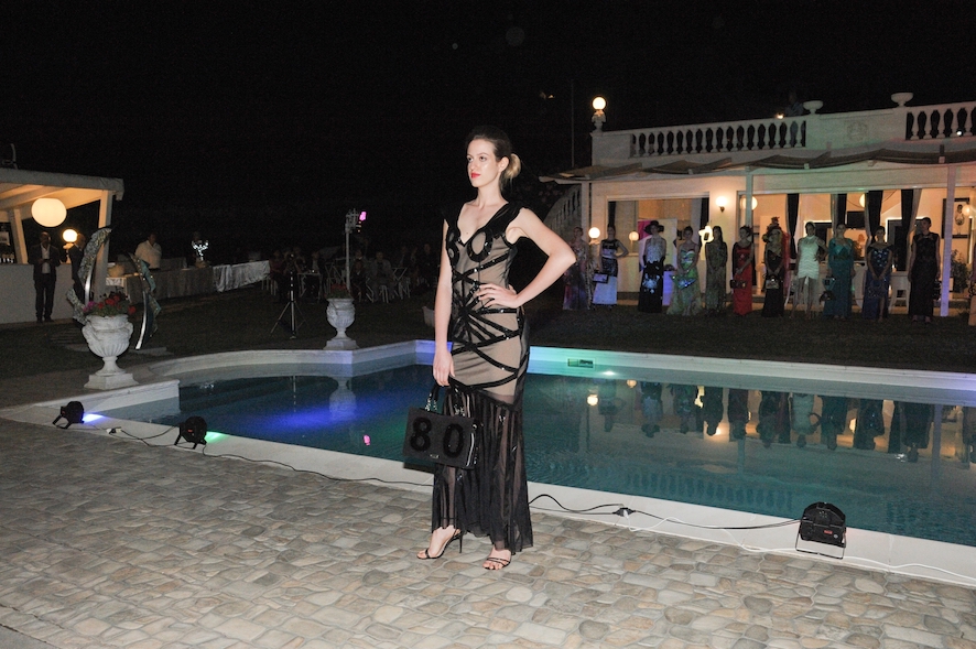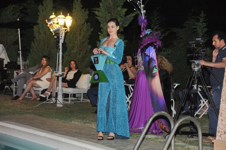 È stato esposto, sempre a bordo piscina e come da tradizione, anche “l’abito artistico” creato in quest’occasione dall’artista Aida Abdullaeva, realizzato in pregiata seta uzbeca e italiana in stampa digitale, disegnata dal graphic designer Miguel Angel Acosta. Un abito particolare, dove l’artista ha giocato con i colori, pensando ad una donna dal carattere forte, che emana gioia di vivere, con un tocco di eccentricità ma allo stesso tempo elegante e raffinato.