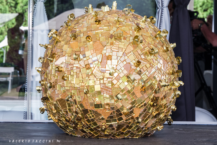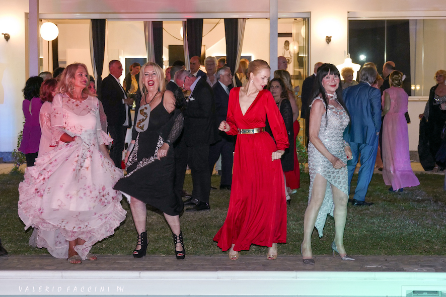 Il Gran Gala è continuato con un gustoso buffet sempre accompagnato dalle diverse tipologie di vini dell’Azienda “Casale del Giglio”; la performance musicale a tema dell’attrice e cantante Emanuela Mari che con la sua splendida voce ha interpretato “Abat jour” un famoso e romantico successo degli anni ’20, riproposto in mise Charleston, accompagnata dalla danzatrice Marzia Tangari, in arte Elektra Kiss, travestita da simpatico abat jour che si è esibita in un elegante burlesque; la lotteria solidale che ha messo in palio alcune preziose creazioni della stilista Eleonora Altamore, delle artiste Patrizia Dalla Valle e Aida Abdullaeva, quest’ultima ha donato un prezioso dipinto in acrilico con applicazioni in oro e argento, raffigurante motivi floreali e ispirato all’estate, in tema con la serata, i proventi della lotteria sono stati devoluti all’associazione “Donne al Centro”; in finale, introdotta da sfavillanti suggestioni pirotecniche dell’Azienda “Pirofantasy”, la buonissima torta artistica a forma di corona della pasticceria “I Siciliani”, realizzata ispirandosi a un’opera dell’artista Patrizia Dalla Valle.