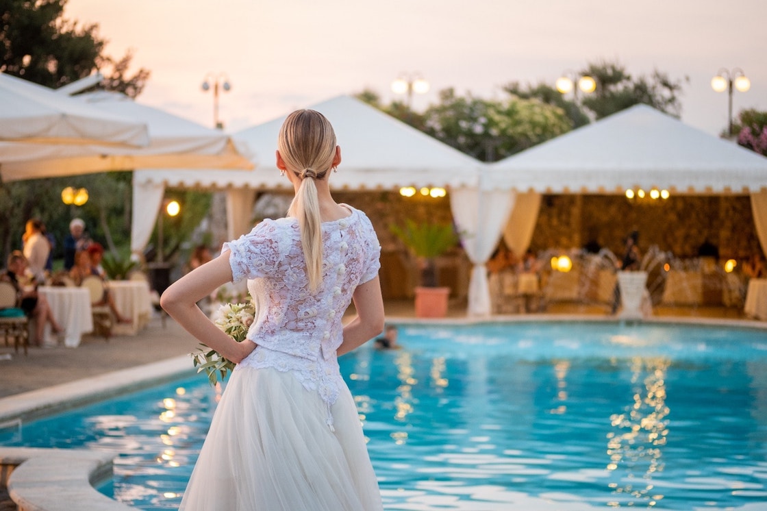 Stavolta vogliamo iniziare dalla fine, da quell’incantevole quadro che ha immediatamente evocato la magnifica immagine che solo la fantasia di Botticelli poteva sognare. Da una meravigliosa modella, vestita di una candida creazione de La Vie En Blanc Atelier, che esce dalle acque, novella Venere di questo secolo. Da quest’ultima uscita della sfilata che ha regalato emozioni e strappato applausi a scena aperta ai 100 prestigiosi ospiti accorsi in Sabina per l’opening de “La Torretta”, uno spazio elegante in cui le meravigliose creazioni firmate La Vie En Blanc Atelier, ammirate in passerella, saranno proposte in esclusiva per il territorio che comprende Mentana, Monterotondo, Guidonia, Fonte Nuova, Torrita Tiberina e la provincia di Rieti. Una regione che si sta aprendo al settore wedding in una declinazione eco e green che rispecchia le peculiarità del territorio, esaltando la propria attitudine all’accoglienza di matrimoni da tutto il mondo.