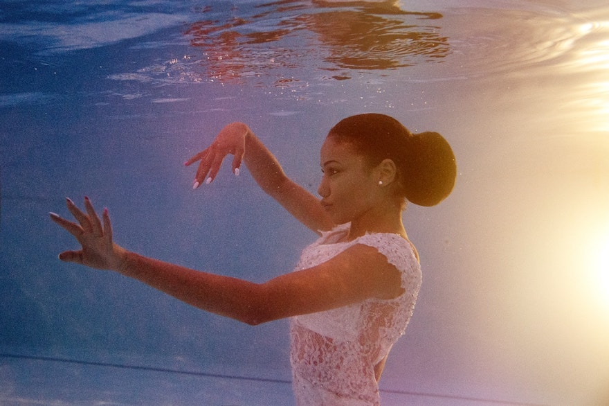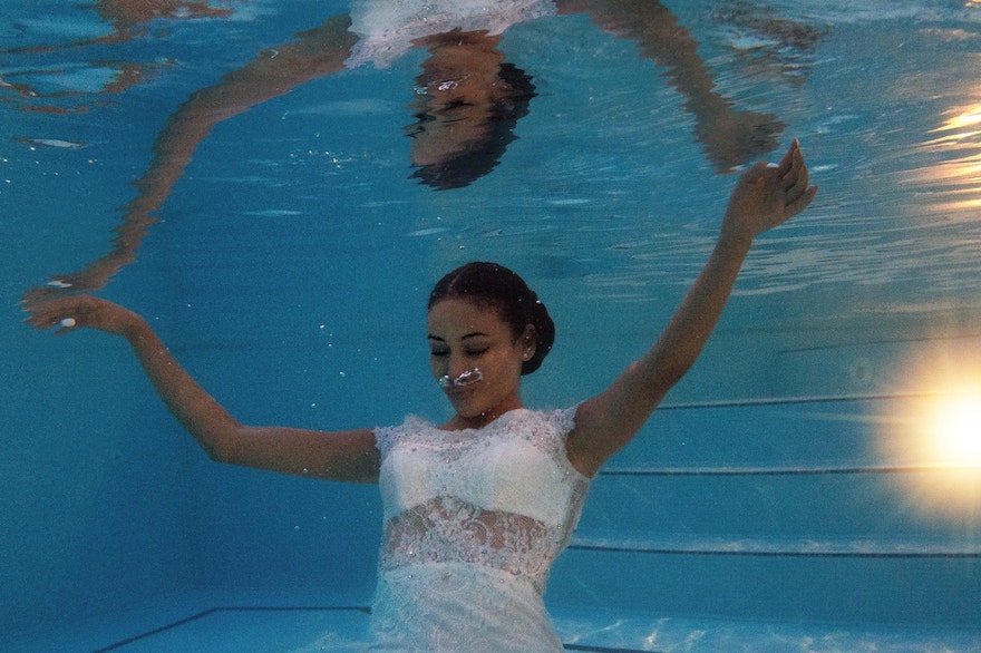 Applauditissime tutte le uscite degli spettacolari abiti in cui prevalevano le eleganti sfumature dell’argento che illuminavano i pregiati tessuti e la preziosità dei pizzi valenciennes e chantilly, fino all’autentico coupe de théâtre dell’ultima uscita, dalle acque cristalline della maestosa piscina, ripreso e condiviso in diretta da moltissime dirette social.