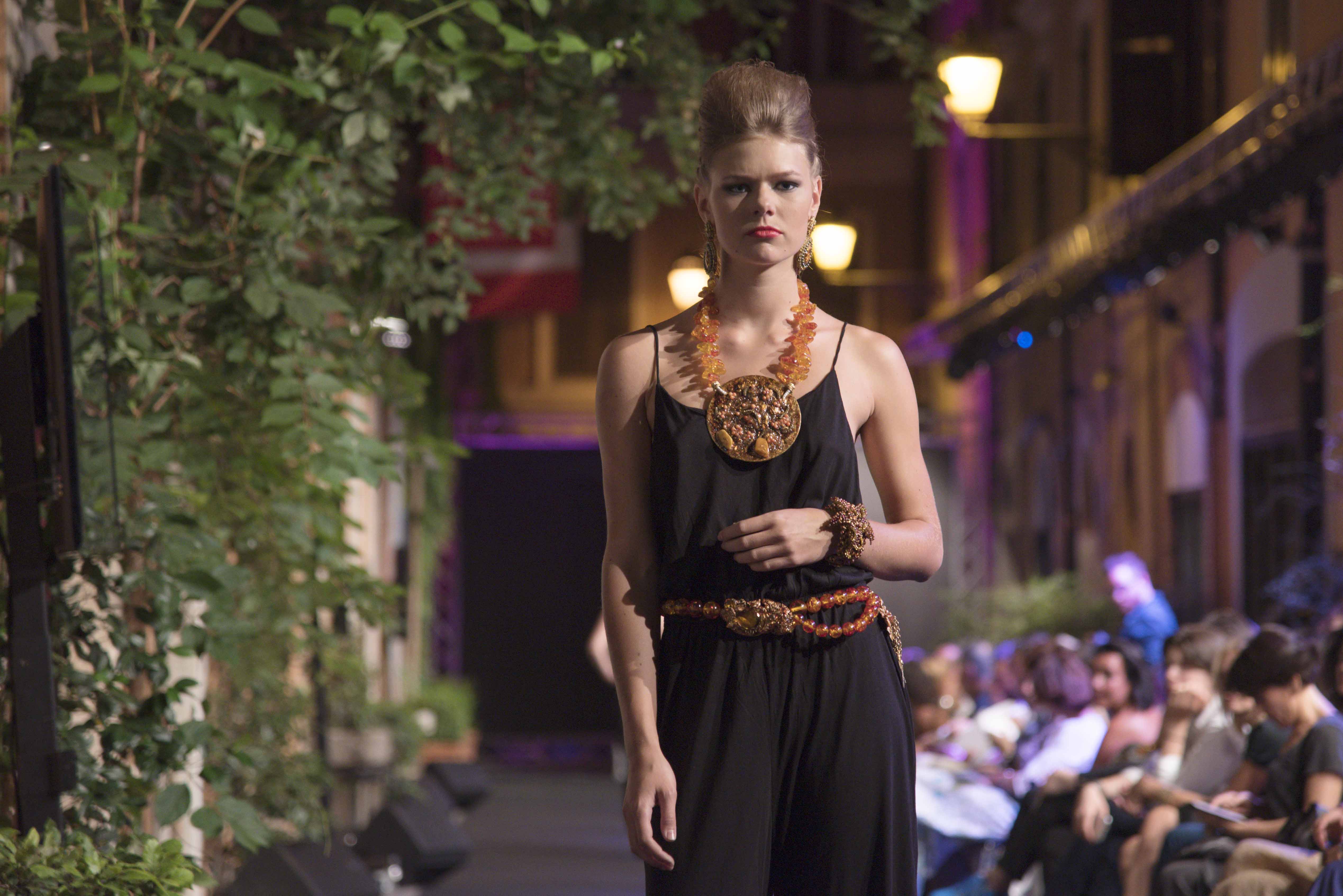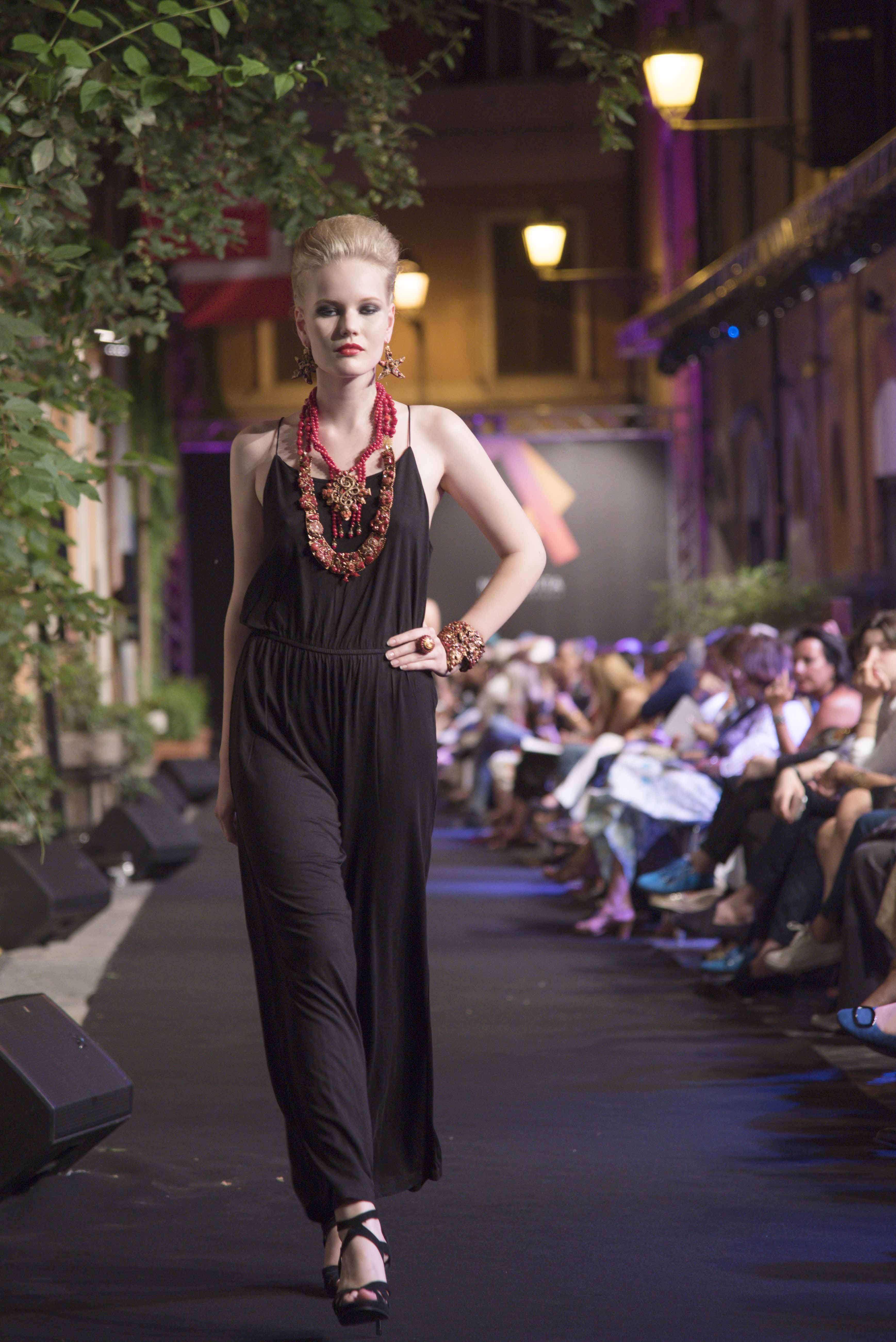 Per la Sezione “Jewelry” Gaia Caramazza ha presentato in anteprima “Scrigno Collection”. Sette segreti da custodire, sette scrigni preziosi disegnati per ognuno dei volti della femminilità. Sette piccoli gioielli da indossare vicino al cuore, lì dove le passioni nascono e trovano protezione. La Collezione “Scrigno” è realizzata interamente a mano, in oro, oro rosa, argento e bronzo abbinati alle pietre agata, quarzo, radici di smeraldo e brillanti. Marina Corazziari, scenografa e designer di gioielli, reduce dai successi ottenuti con le sue creazioni in due mostre una a Roma e l’altra a New York, prendendo ispirazione dalle atmosfere del suo mediterraneo ha presentato creazioni esclusive realizzate in oro, argento e pietre dure. Suo anche l’abito di tulle rosa antico con decorazioni ramage, creato con gioielli modulari e rimovibili.