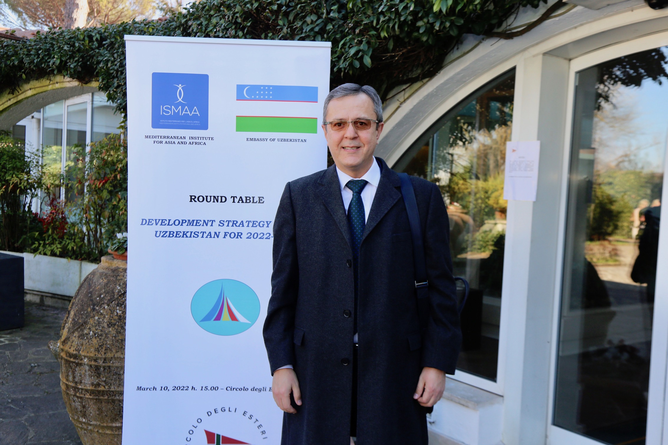 Si è tenuta giovedì 10 marzo 2022 al Circolo del Ministero degli Affari Esteri di Roma la Tavola rotonda “Strategia di Sviluppo del Nuovo Uzbekistan per il 2022-2026” organizzata dall’ISMAA, Istituto Mediterraneo per l’Asia e l’Africa, e promossa da S.E. Otabek Akbarov, Ambasciatore dell'Uzbekistan in Italia, insieme all'Ambasciata dell'Uzbekistan a Roma con il supporto dell’USAID, Agenzia degli Stati Uniti per lo Sviluppo Internazionale.