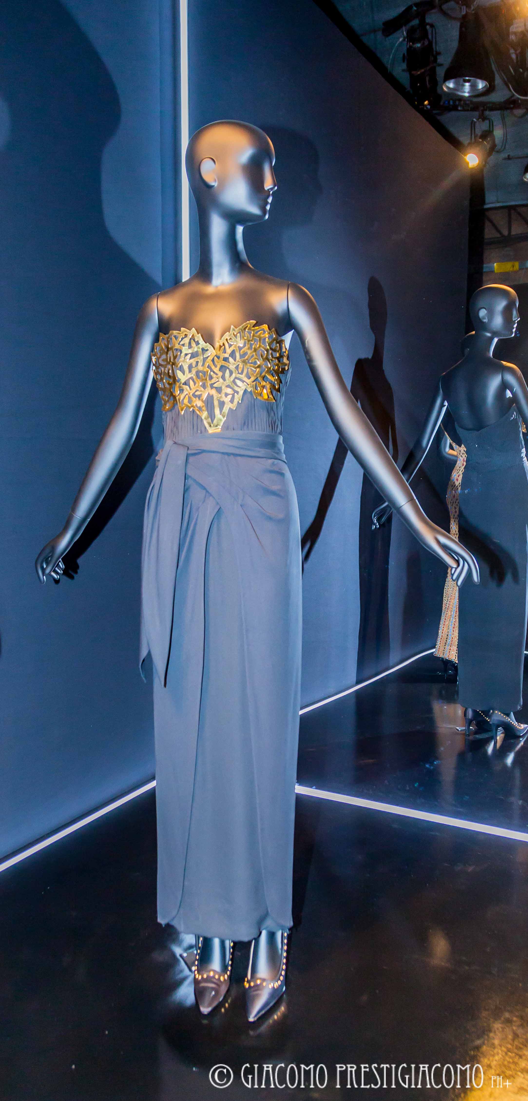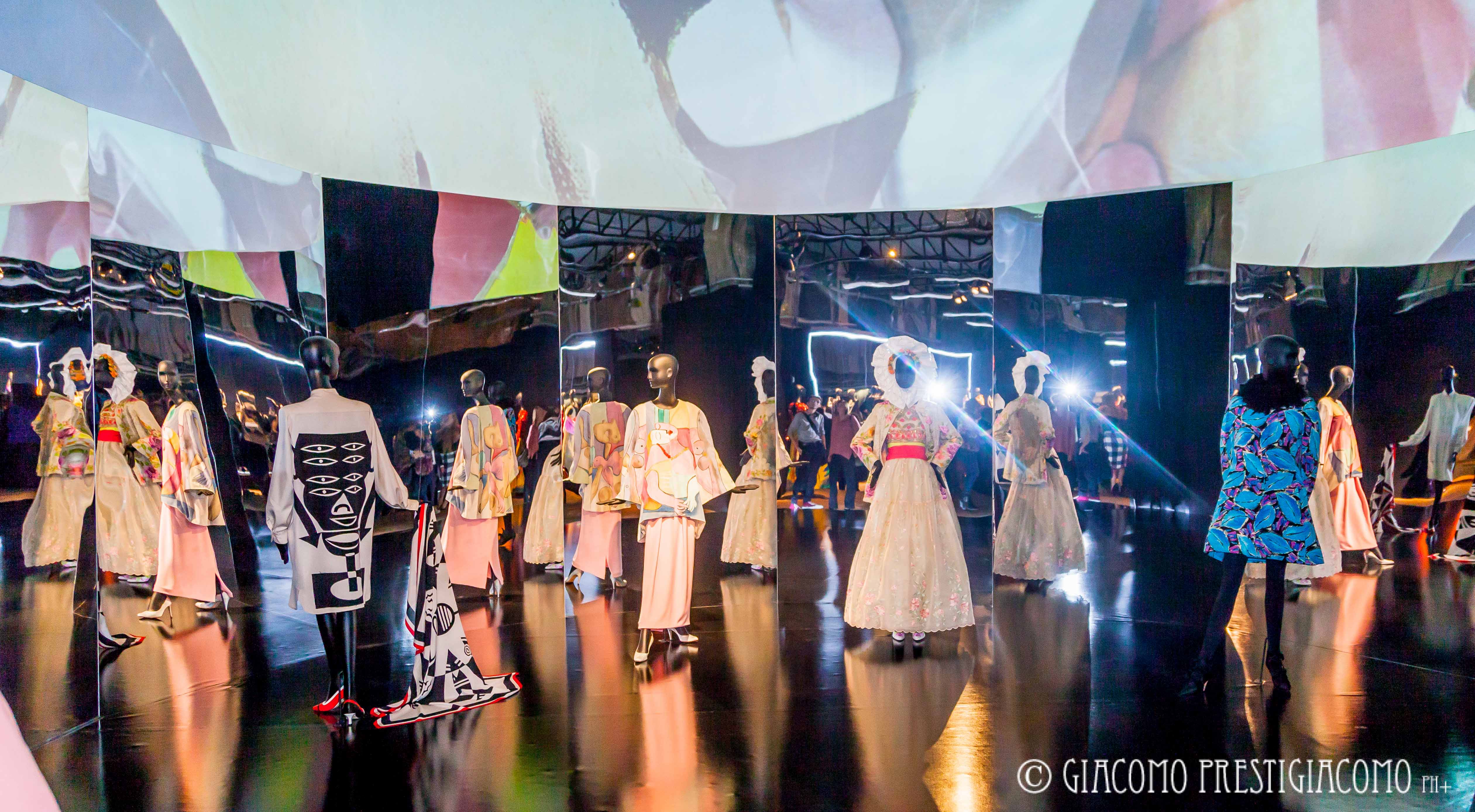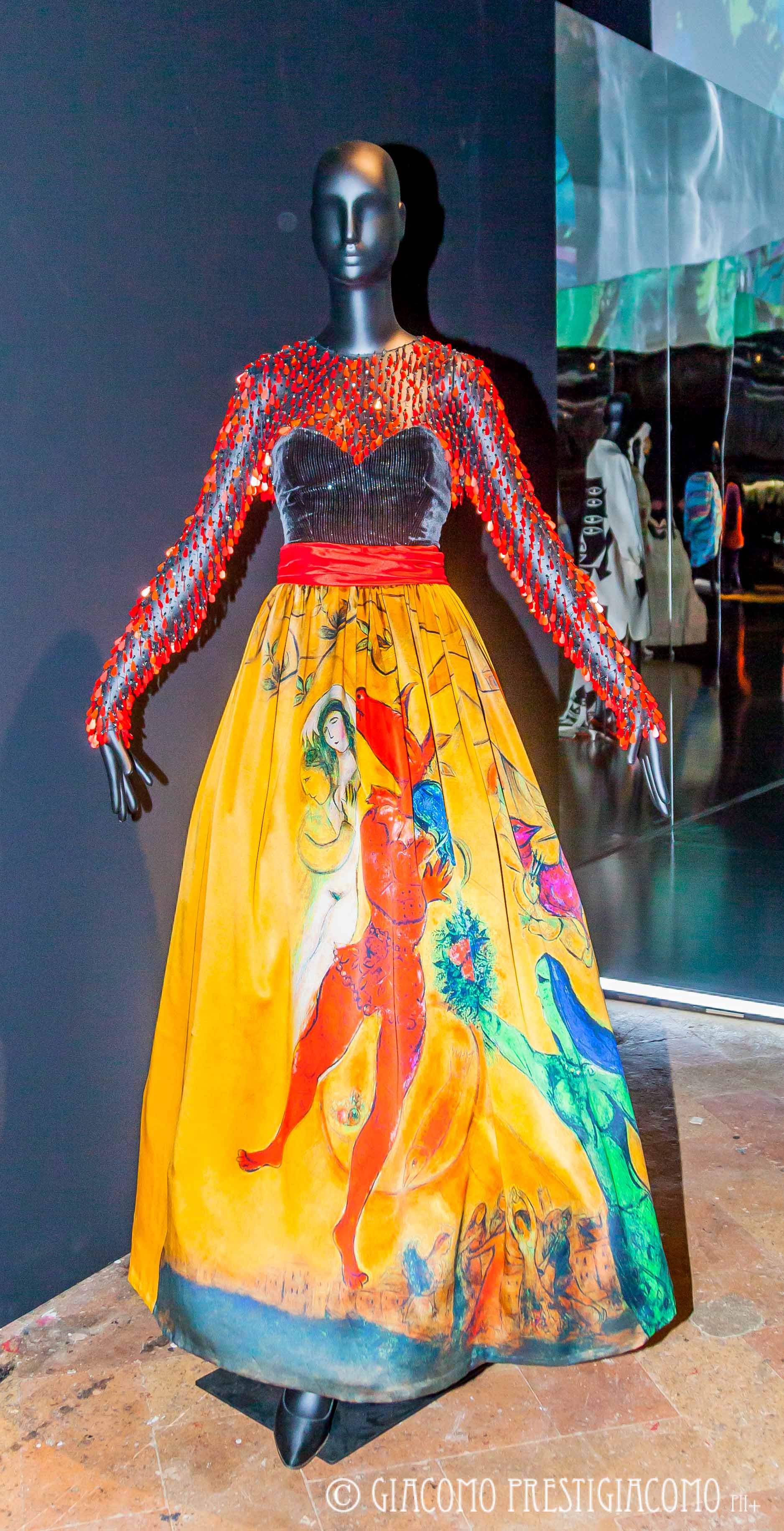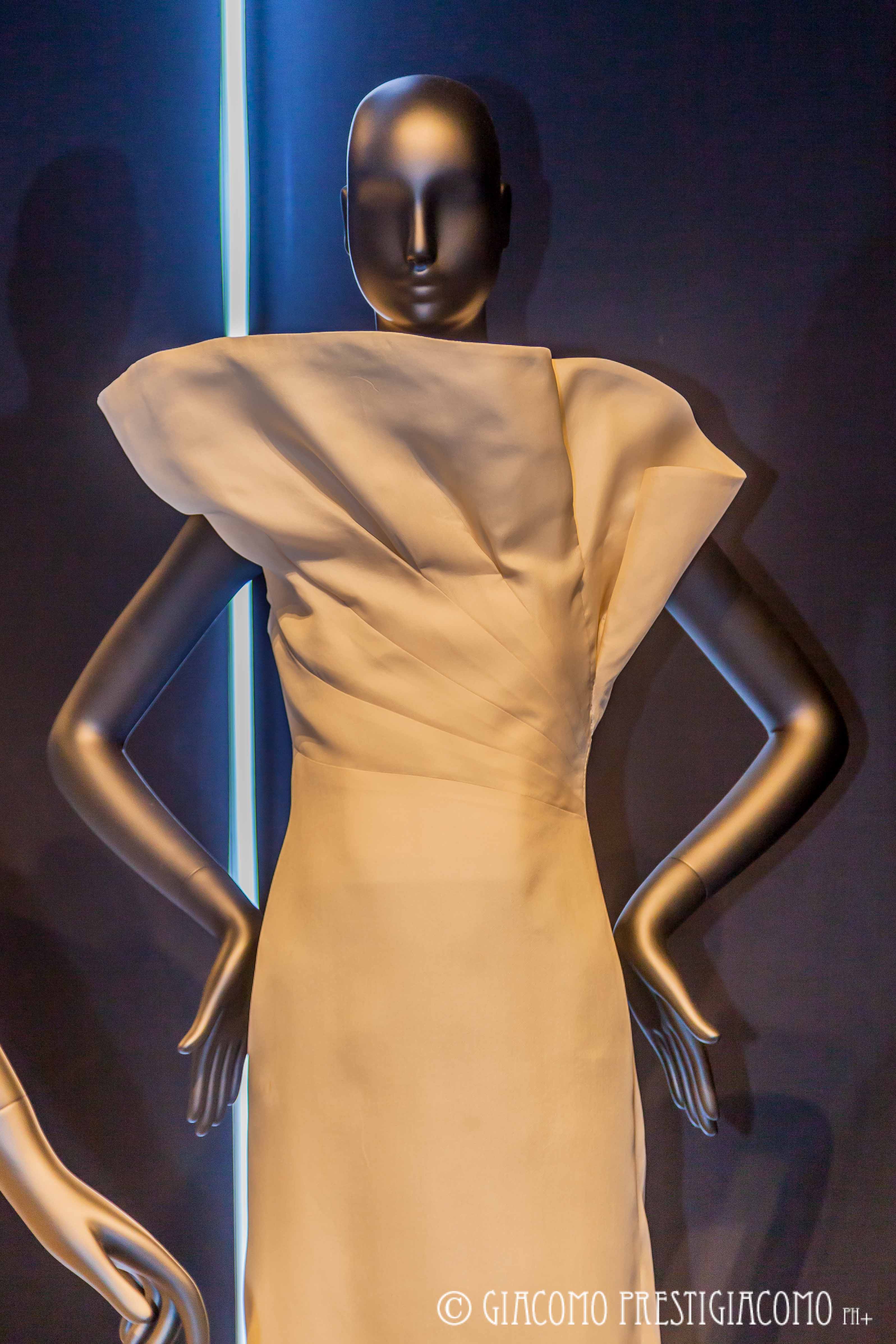 La mostra allestita nella ex chiesa di San Carpoforo in via Formentini, in pieno centro storico di Milano, si suddivide in diversi settori: arte, la Scala, exoticism, white, print & graphic. Nel settore arte sono stati esposti tutti gli abiti ispirati dai vari artisti amati da sempre dalla stilista: opere di Jim Dine, Picasso, Klimt, Frida Kahlo, Depero, Chagall. Nella sezione la Scala abbiamo potuto ammirare tutti gli abiti che la stilista ha disegnato per le prime delle opere liriche e che hanno indossato le signore dell’alta società e dell’aristocrazia. Nella sezione exoticism collezioni con stampe che richiamano i paesi esotici, luoghi ricchi d’incanto e fascino. La sezione white è dedicata agli abiti da sposa, print & grafic all’arte moderna, con disegni e colori che la ricordano.