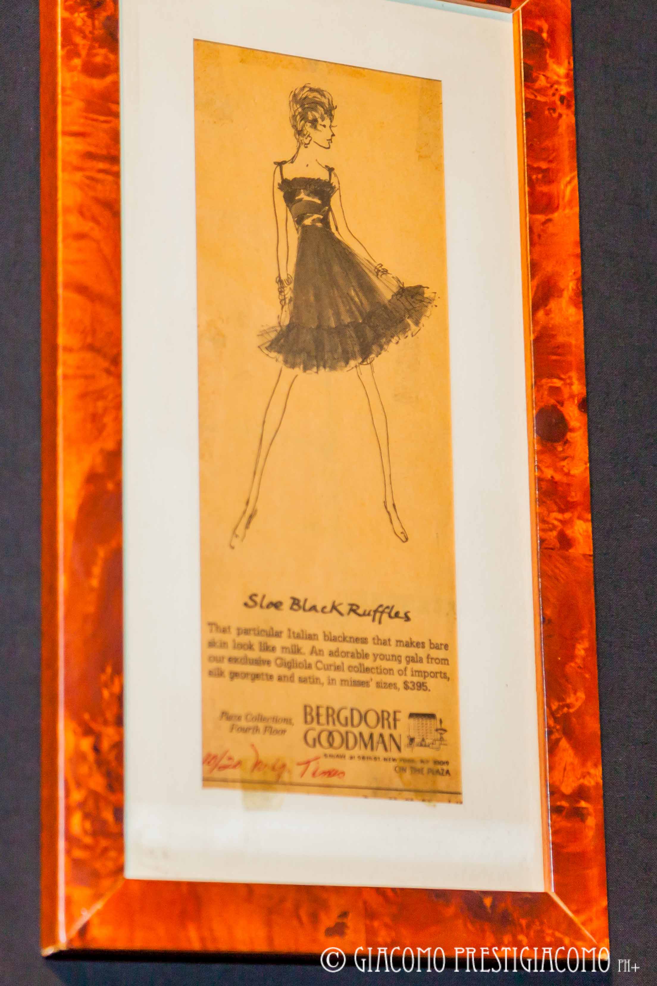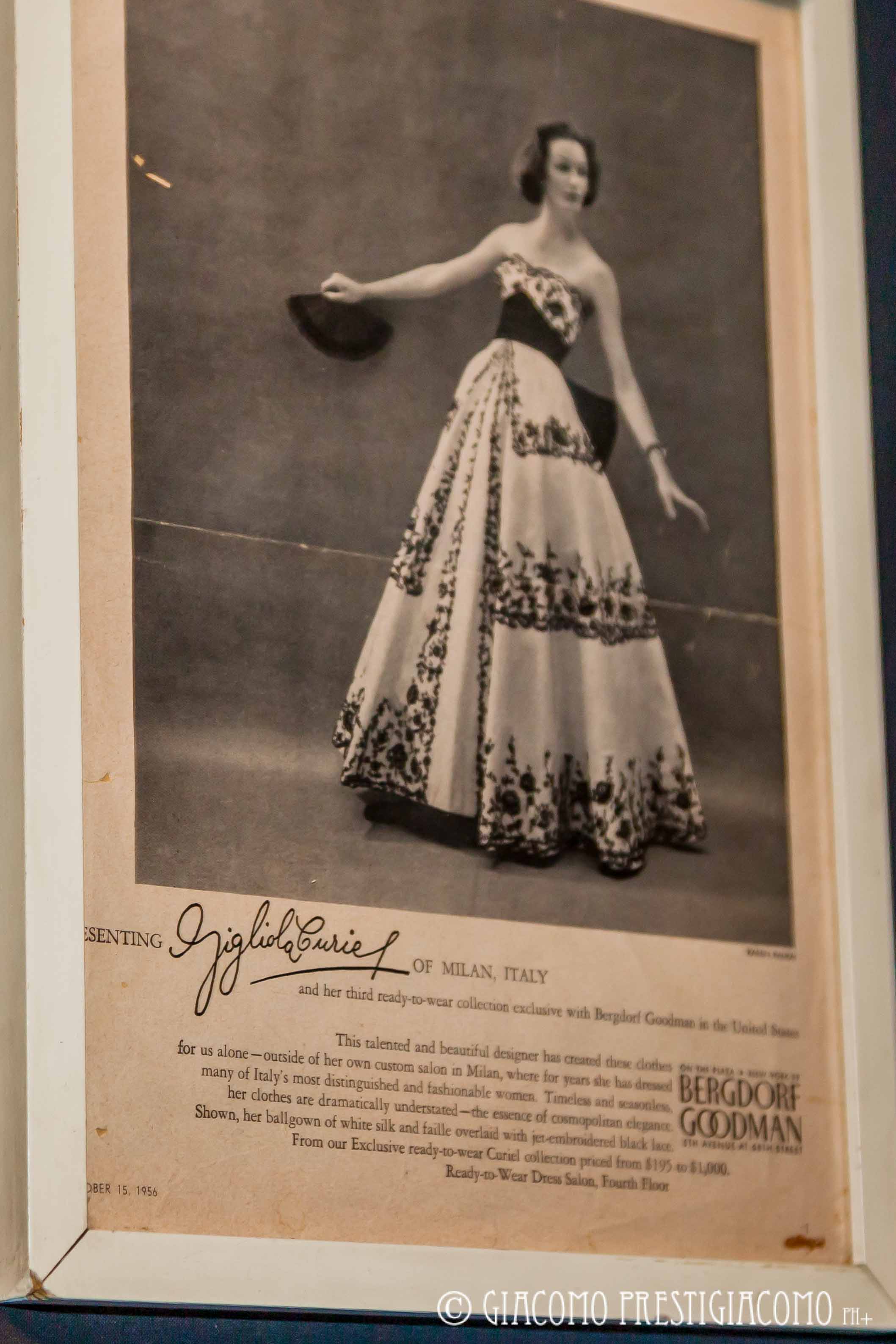 Una parte della mostra “Curiellino” è riservata agli abiti disegnati dalla figlia Gigliola Curiel, rigorosamente neri e richiama i capi icona della maison Curiel.