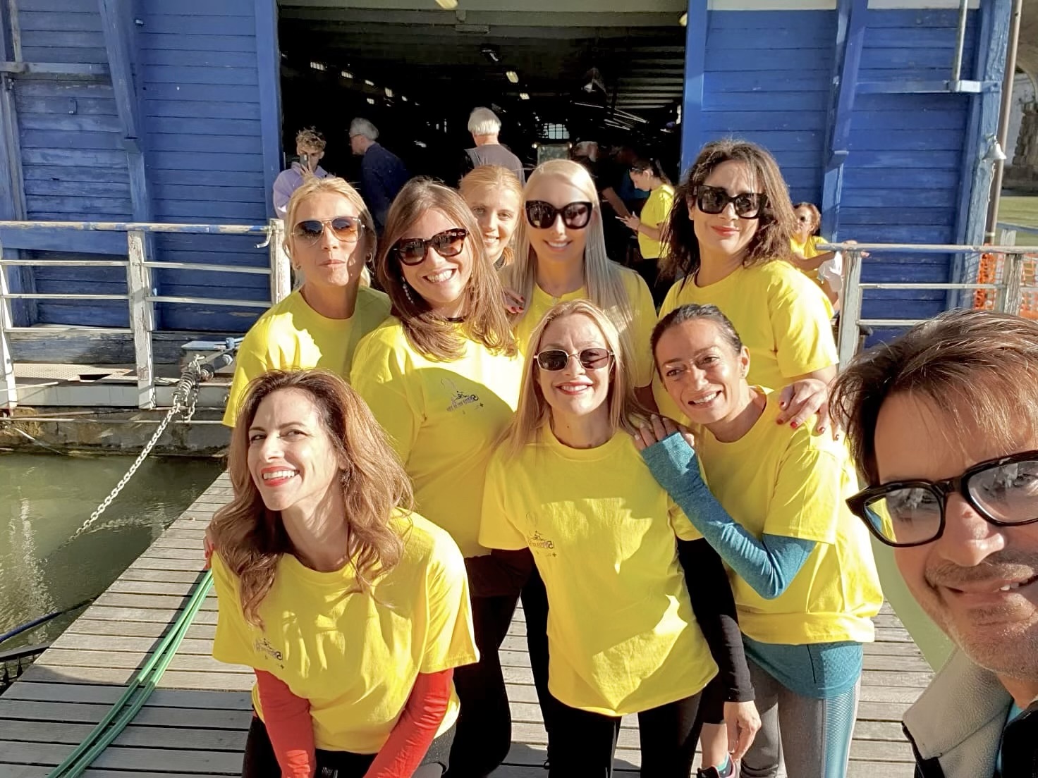 L'istruttore Massimo Parmegiani insieme all'equipaggio Donne dello Spettacolo e della Stampa: Janet De Nardis, Anna Grossi,Claudia Cortegiani, Lidia Bonifazi, Annalisa Colavito, Gisella Peana, Monia Manzo