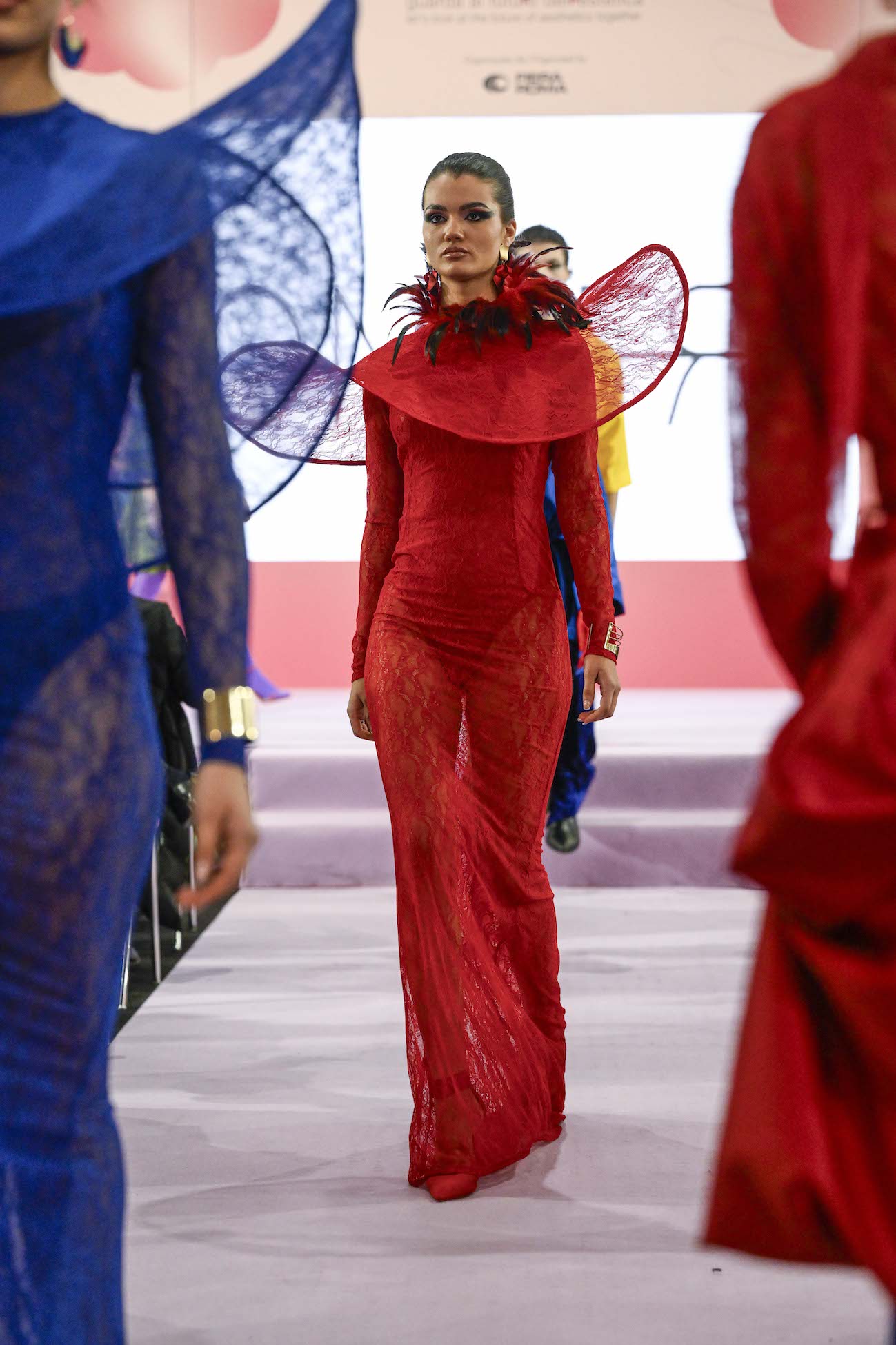 In passerella, la presenza magnetica di Lucilla Nori, Miss Universo Italia 2025, ha incarnato una bellezza che supera i canoni imposti, celebrando una pluralità espressiva senza confini.