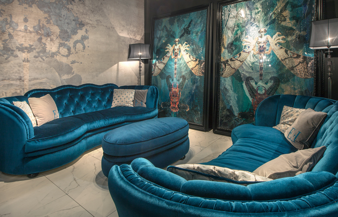 La passione per la natura e per le sue essenze nobili e pregiate, originano la ricerca di materiali che caratterizzano ogni prodotto di questa collezione. Pelle, cuoio e nabuk nelle colorazioni tipiche della terra: sabbia, ecrù, grigio e tortora, materiali con tradizioni uniche ed antiche che parlano di storia e riescono a diventare contemporanei. Quest’ultimi, sono diventati parte integrante nel rivestimento dei divani. Pellami scelti, selezionati ed altamente ecologici, che garantiscono sempre il rispetto per l’ambiente. Altro elemento della natura preso in considerazione è l’acqua, attraverso la quale si approda inevitabilmente all’ idea dell’ energia, dell’ ossigeno e del blue come colore dominante sia sui pellami che, soprattutto, sui tessuti come sete, velluti, stampati e broccati. Altro elemento considerato è l’aria, un miscuglio di sostanze aeriformi che costituiscono l’atmosfera, essenziale per la vita della maggior parte degli animali, dei vegetali e in particolare per la vita umana. Da questa ispirazione si è creato un bestiario fatto di immagini di insetti, farfalle, coleotteri, imenotteri e scarabei. Con un esclusivo intarsio tra immagini fotografiche e materiale esclusivo ed innovativo, come la resina che fa acquistare a queste immagini vivacità e brillantezza.