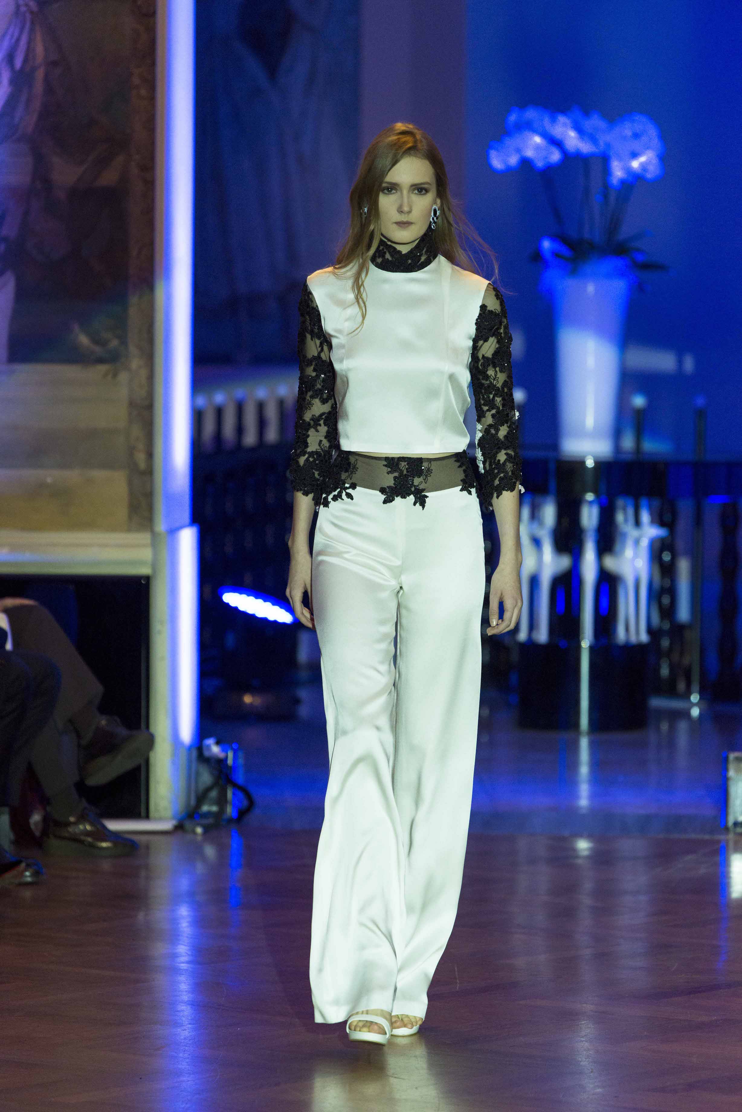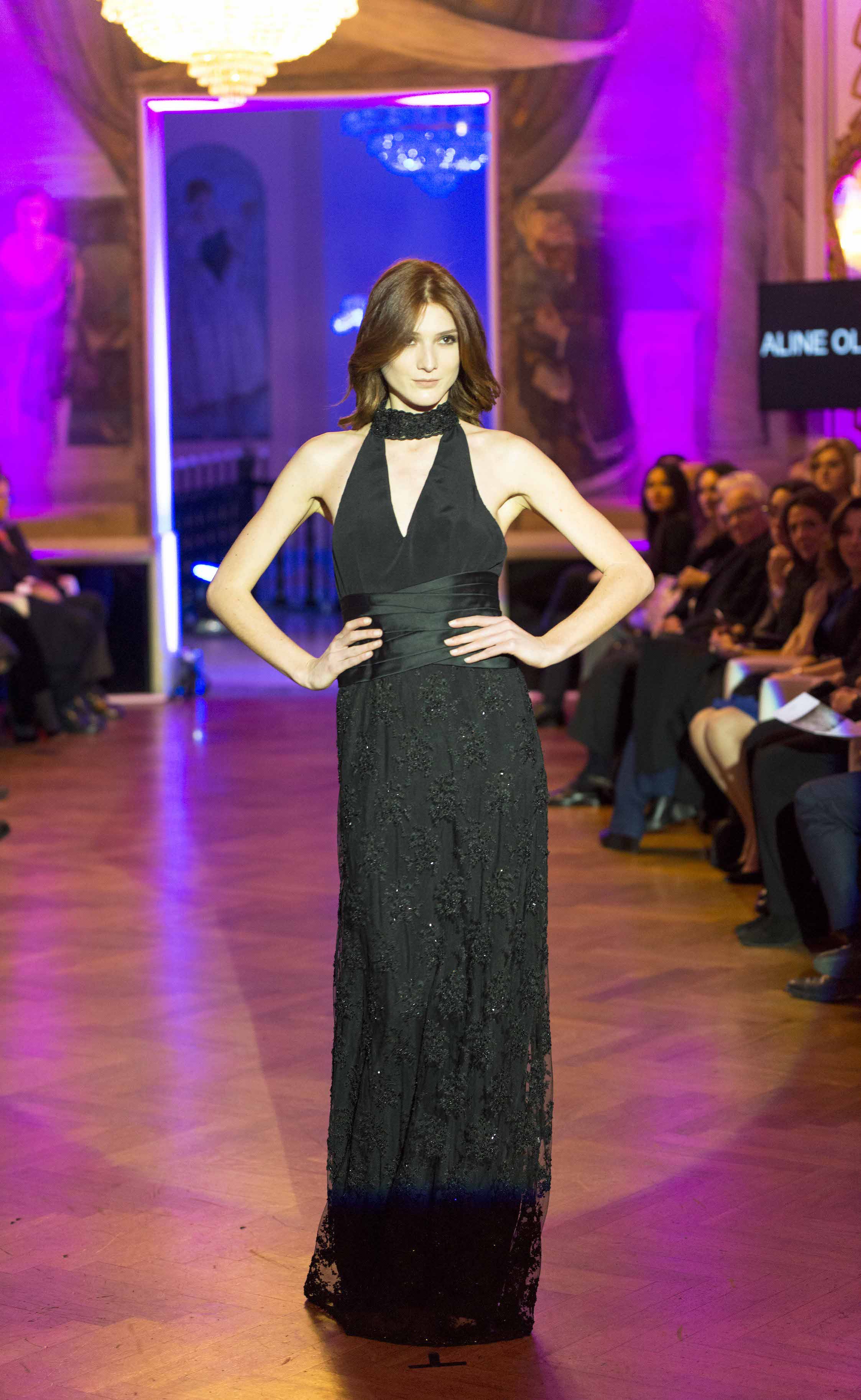 La prima collezione d’alta moda presentata in passerella è stata quella di Aline Oliveira, creatività, determinazione, fascino, emozioni, passione, tutti elementi che testimoniano l'evoluzione creativa della stilista brasiliana, che per la prima volta è presente ad Altaroma. Realizzazioni sartoriali made in Italy, sono l’essenza dell’alta moda, capaci di coniugare con il suo estro, il passato con il futuro. Outfit bon ton, che non rinunciano a quel tocco di sensualità, femminili, sofisticati, realizzati tendenzialmente in cady di seta, organza, mikado e leggeri inserti di paillettes. Il gioco delle linee si trasforma in gesto libero per donne che vogliono distinguersi per il loro stile ed una mirata ricercatezza. La tavolozza dei tessuti si concentra principalmente su quattro colori complementari: bianco, nero, grigio e blu. Magico l’abito da sposa, un tubino in seta a sirena, color avorio impreziosito da ricami fatto a mano, tre strati di organza impreziosiscono la gonna, il velo lungo tre metri risveglia la passione dei giorni luminosi e delle notti romantiche.