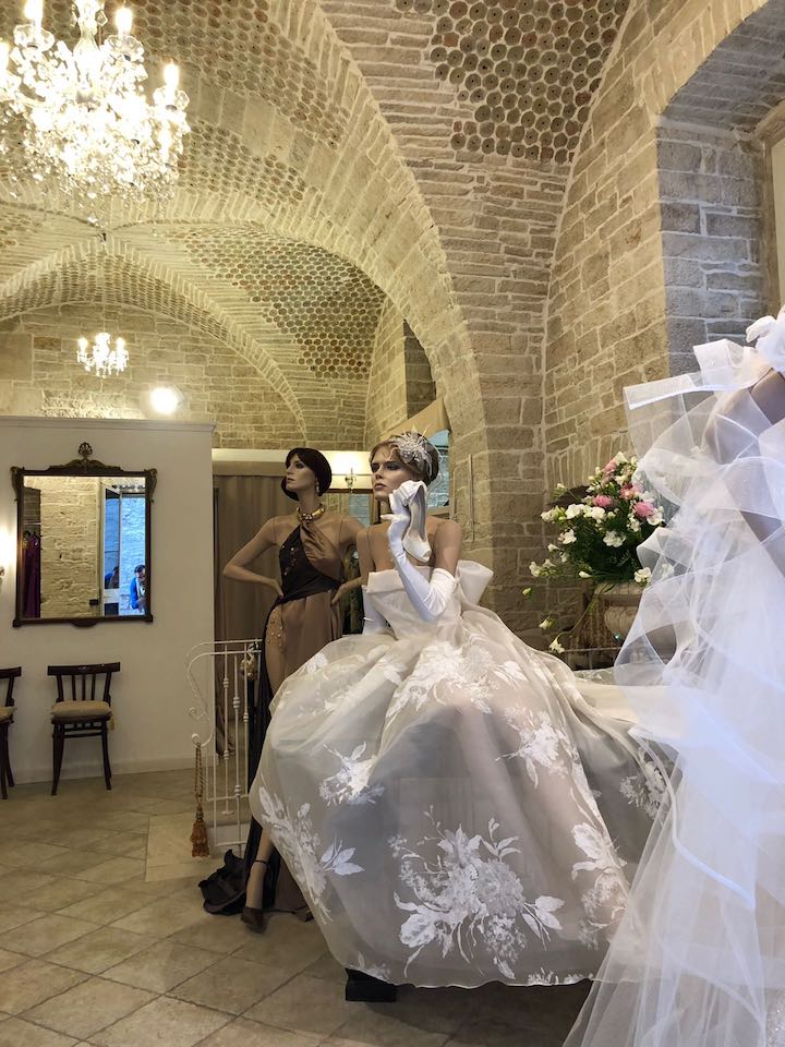 Nel suggestivo ed elegante atelier, nel quale è protagonista la pietra locale bianca pugliese, è possibile trovare creazioni sartoriali uniche, accessori moda come shoes e bijoux d’alta moda, che si rinnovano nello stile e non passano inosservati.
