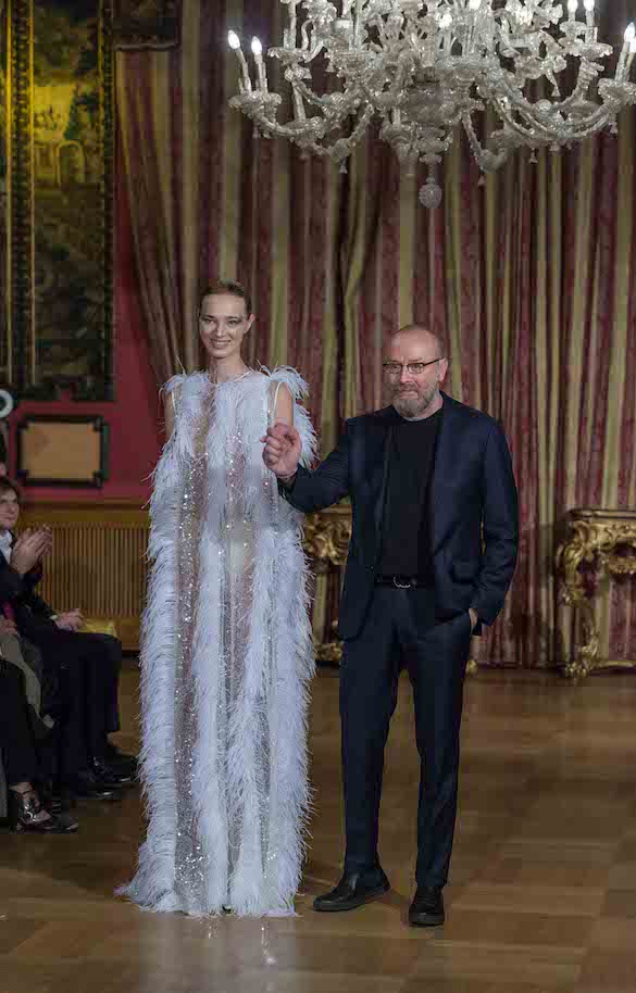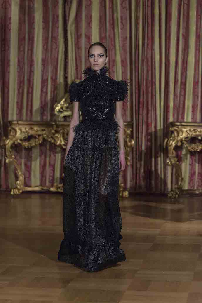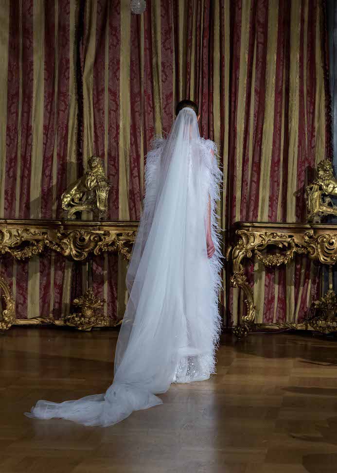 Gran finale con la “Sposa” Lettieri, un trionfo di paillettes e piume sull’abito dalla linea trapezio.