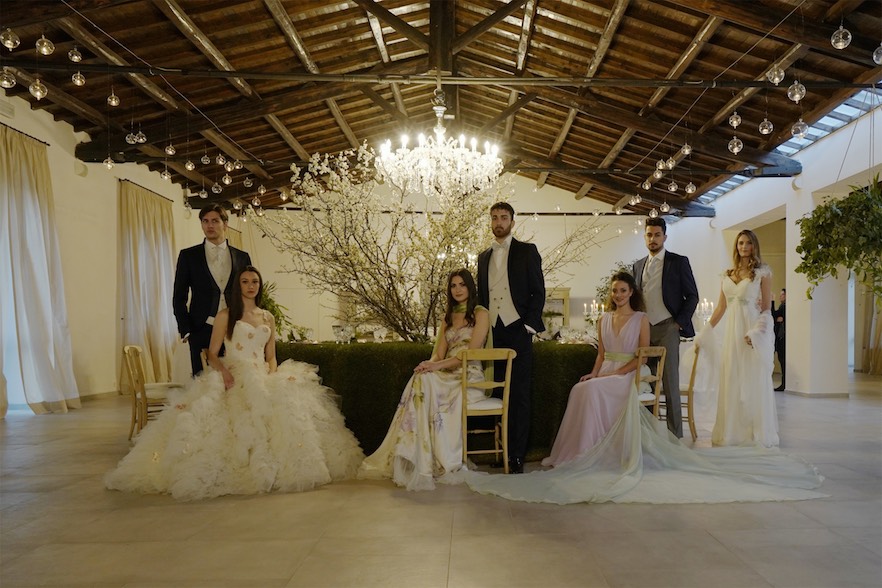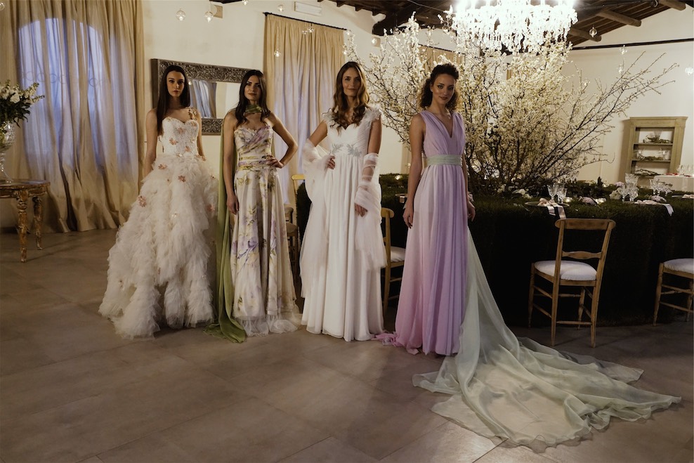 Allietate dalla musica del quartetto Sharareh, l’elegante formazione di archi tutta al femminile, le numerose coppie di sposi hanno ammirato gli splendidi abiti della Spring Capsule Collection realizzata da La Vie En Blanc Atelier, un vero e proprio inno alla primavera, con tessuti colorati floreali nelle sfumature del verde al lilla, soffici tulle e ricami di fiori su basi di organze che sfumano dal bianco al cipria con incastonature di margherite nella stessa nuance in un esuberante tripudio di fiori capace di donare leggerezza e colore che ritroviamo anche nei preziosi decori dipinti a mano che tracciano seducenti sfumature di colore sulle pregiate sete di questi abiti pensati per una sposa fresca e giovane.
